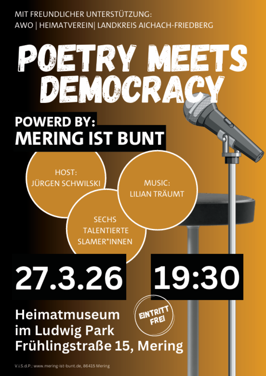 Wie in vielen Kommunen Bayerns wollen wir auch in Mering eine Veranstaltung zur "Langen Nacht der Demokratie" anbieten. Das Thema ist so relevant wie lange nicht mehr, in Deutschland und vielen